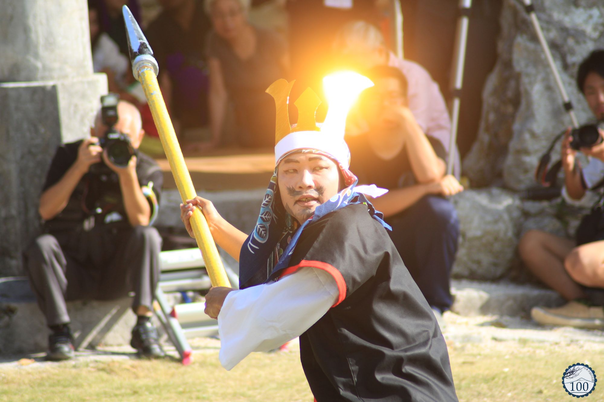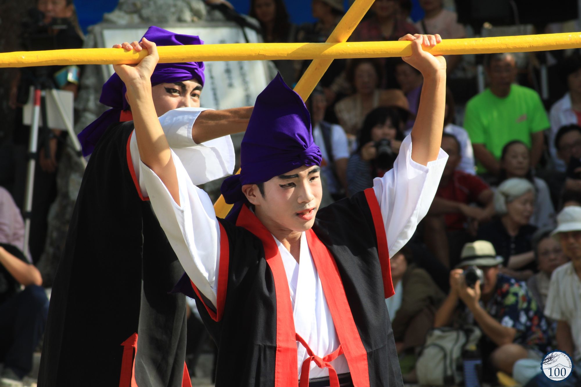 De l’autre, le public divisé en deux colonnes qui se font face, a déjà préparé les appareils photo. Les premières rangées sont assises sur l’herbe. La scène est surprenante pour le visiteur non informé qui pensait ne rencontrer que touristes en shorts, plages et massifs de fleurs. Il se trouve en face du festival le plus important de l’année sur l’île, le Tanadui Matsuri.