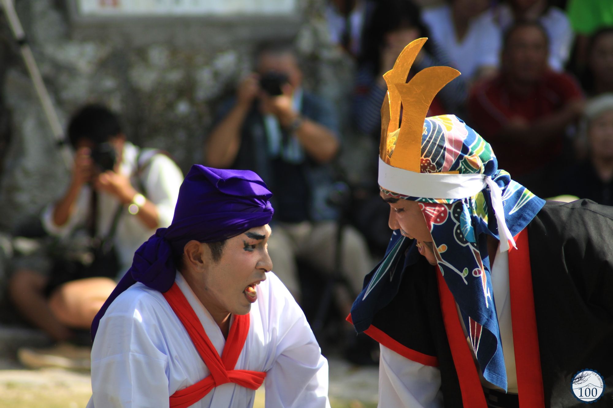 La matinée se poursuit avec des pièces de théâtre. A l’ombre d’un grand chapiteau, le public s’installe pour assister à des pièces comme les kyogen ou les plus comiques Kajiko et Yuhiki. Puis le festival se poursuit notamment avec des processions. Miruku-okoshi est celle conduite par les anciens et les représentants locaux, qui prient pour le bonheur et la santé du village.